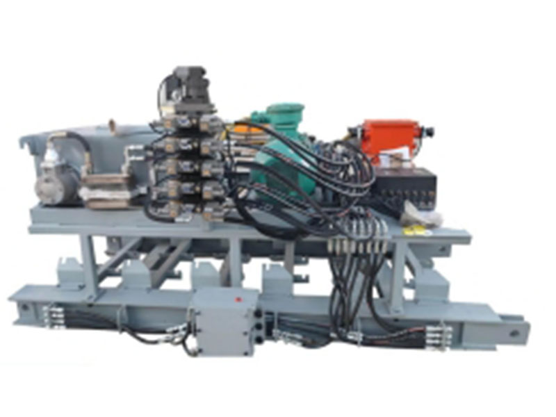 該設備由導軌、緩沖滑床、滑枕推移油缸、機尾座、泵站段、電纜段、外軌道液壓控制系統(tǒng)等部分組成。